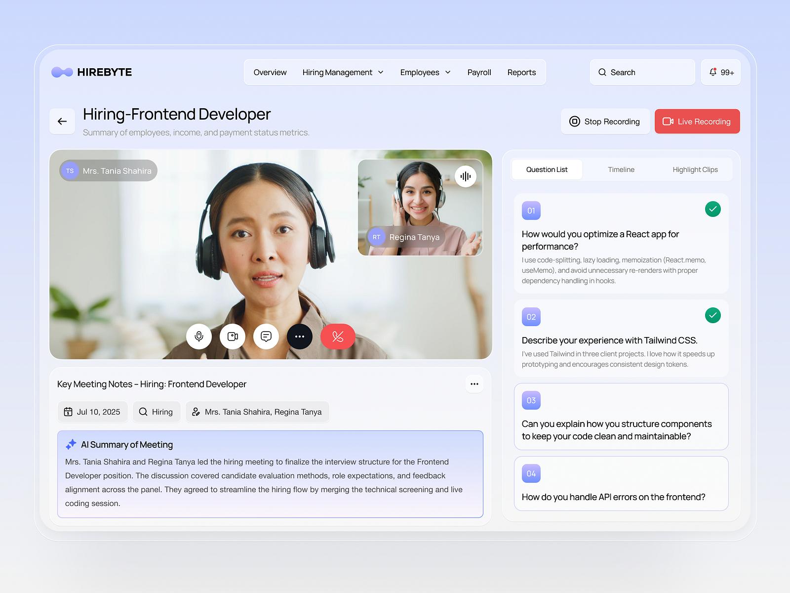 Practice real interview questions with AI and receive instant feedback on your answers, communication, and confidence.